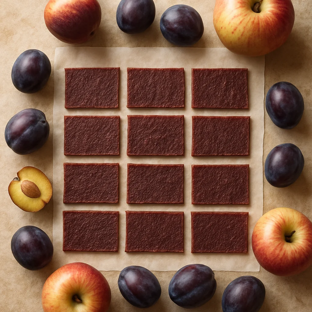 Apples add natural pectin and help the fruit leather hold its shape, while plums bring vibrant flavor and color.