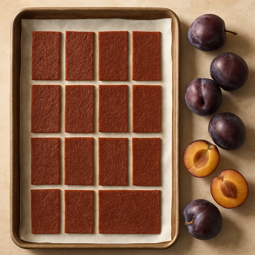 Plum fruit leather with cinnamon is a practical dehydration recipe focused on ingredient prep, moisture control, and easy storage of the finished sheet.