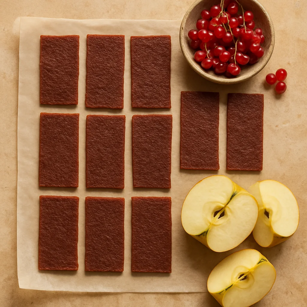 Red currant-apple fruit leather is a practical dehydration recipe focused on ingredient prep, moisture control, and easy storage of the finished sheet.
