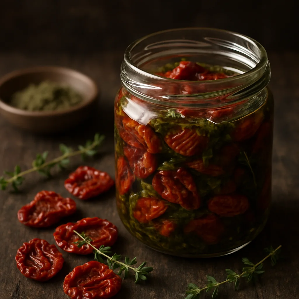 Sun-dried tomatoes with herbs are a flavorful way to preserve tomatoes with rich taste and long shelf life.