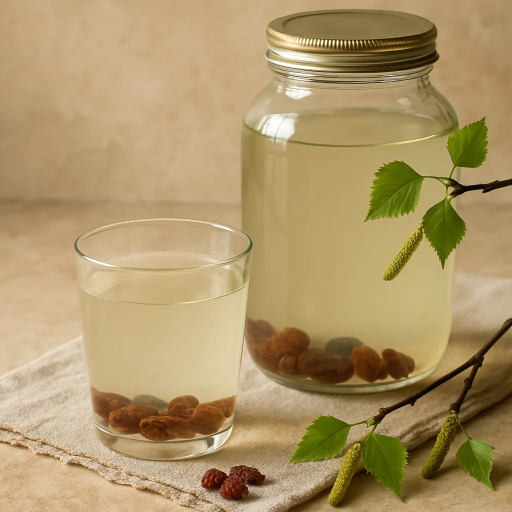A traditional homemade birch sap drink with raisins, lightly sweet and perfect for spring.