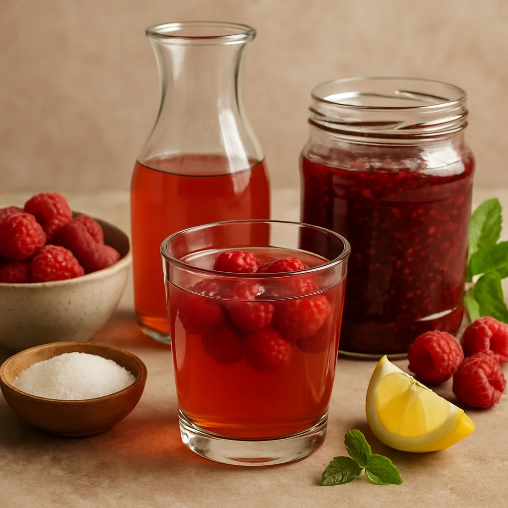Raspberries in their own juice is a delicate homemade preserve with minimal processing.