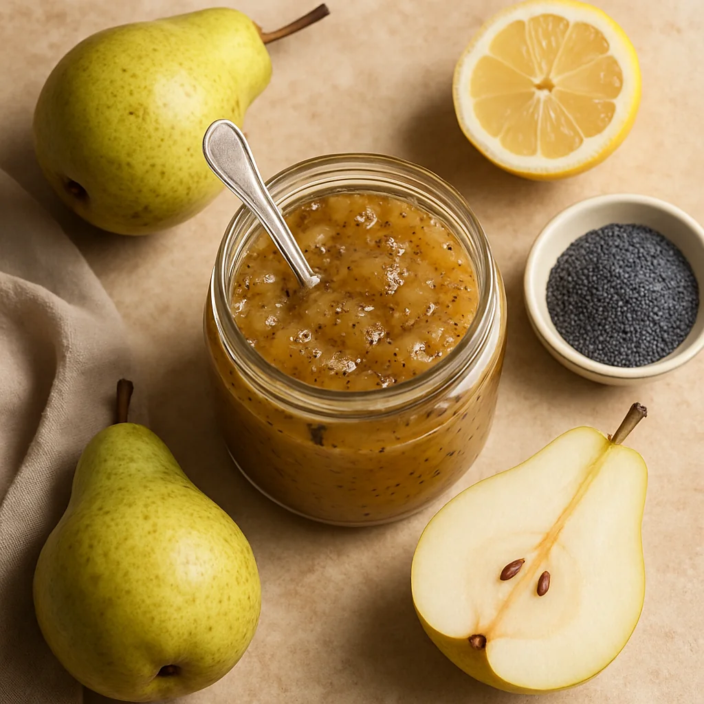 Pear jam with poppy seeds is a unique autumn preserve with a rich flavor and an interesting texture.