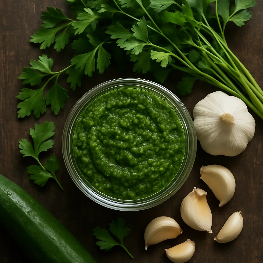 Parsley and garlic paste is a flavorful green spread perfect for everyday use.