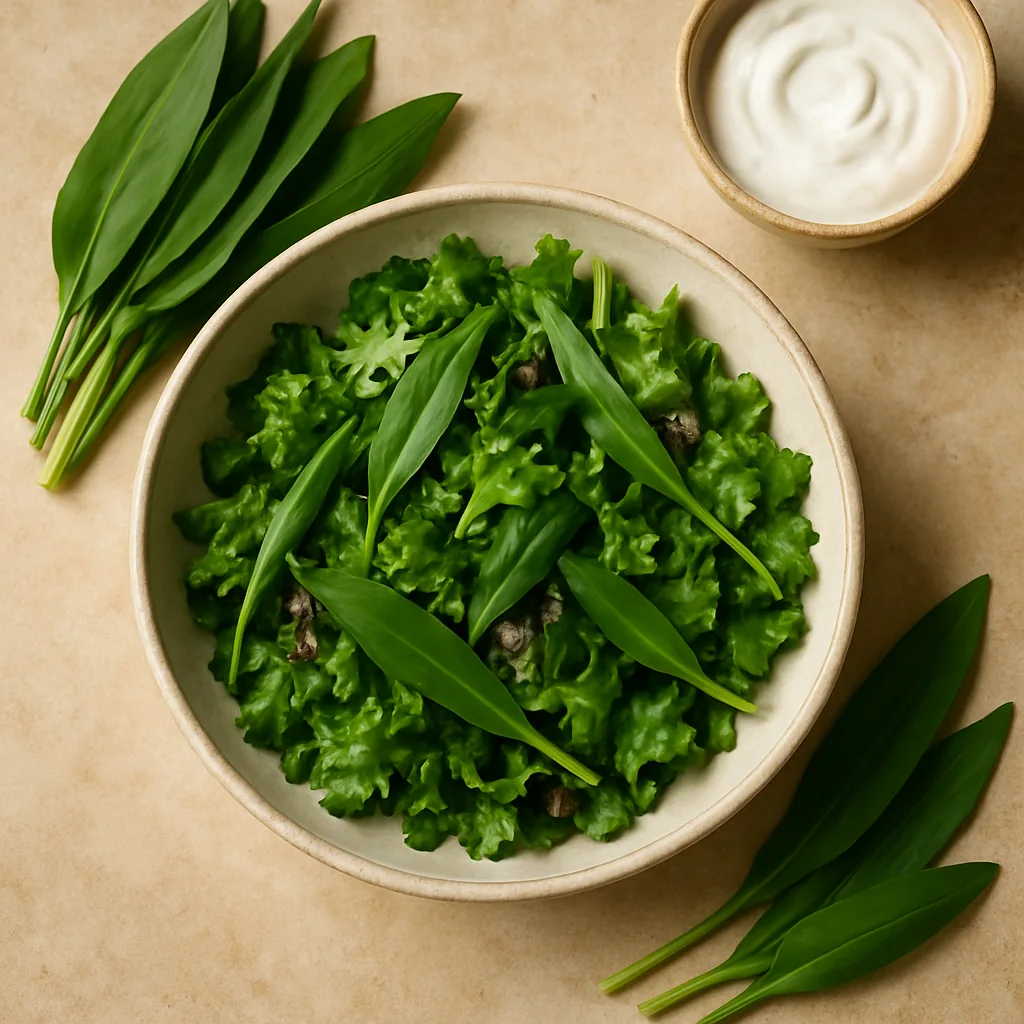Wild garlic and sour cream sauce is a fresh and practical spring preparation.