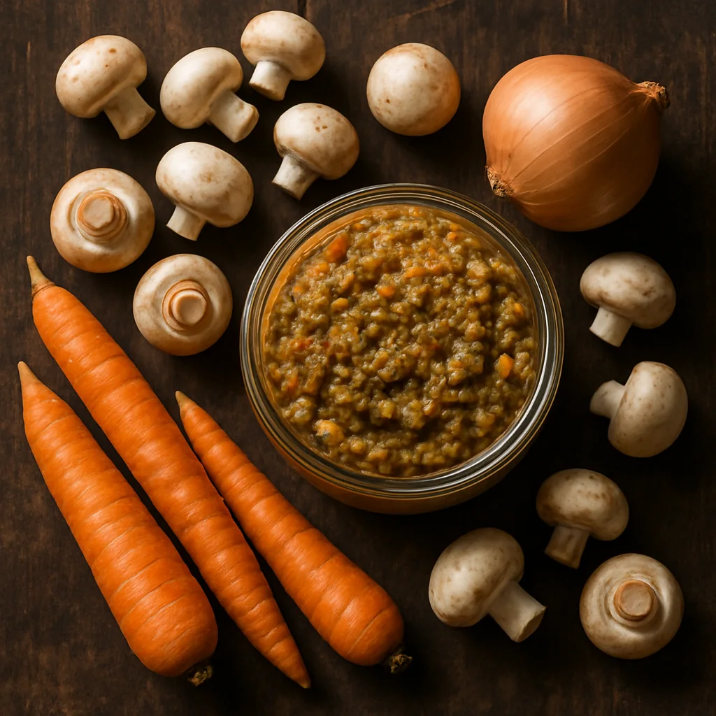 Mushroom spread with carrots is a rich and flavorful homemade preserve, perfect as a spread or appetizer.