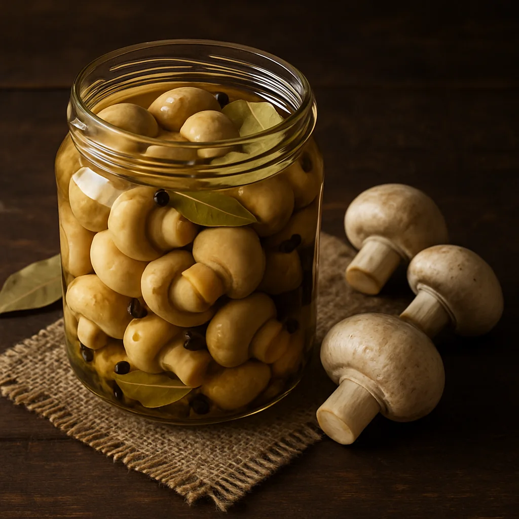Pickled champignon mushrooms are a classic homemade preserve perfect as an appetizer or side dish. This recipe ensures balanced flavor and preserves the natural texture of the mushrooms.