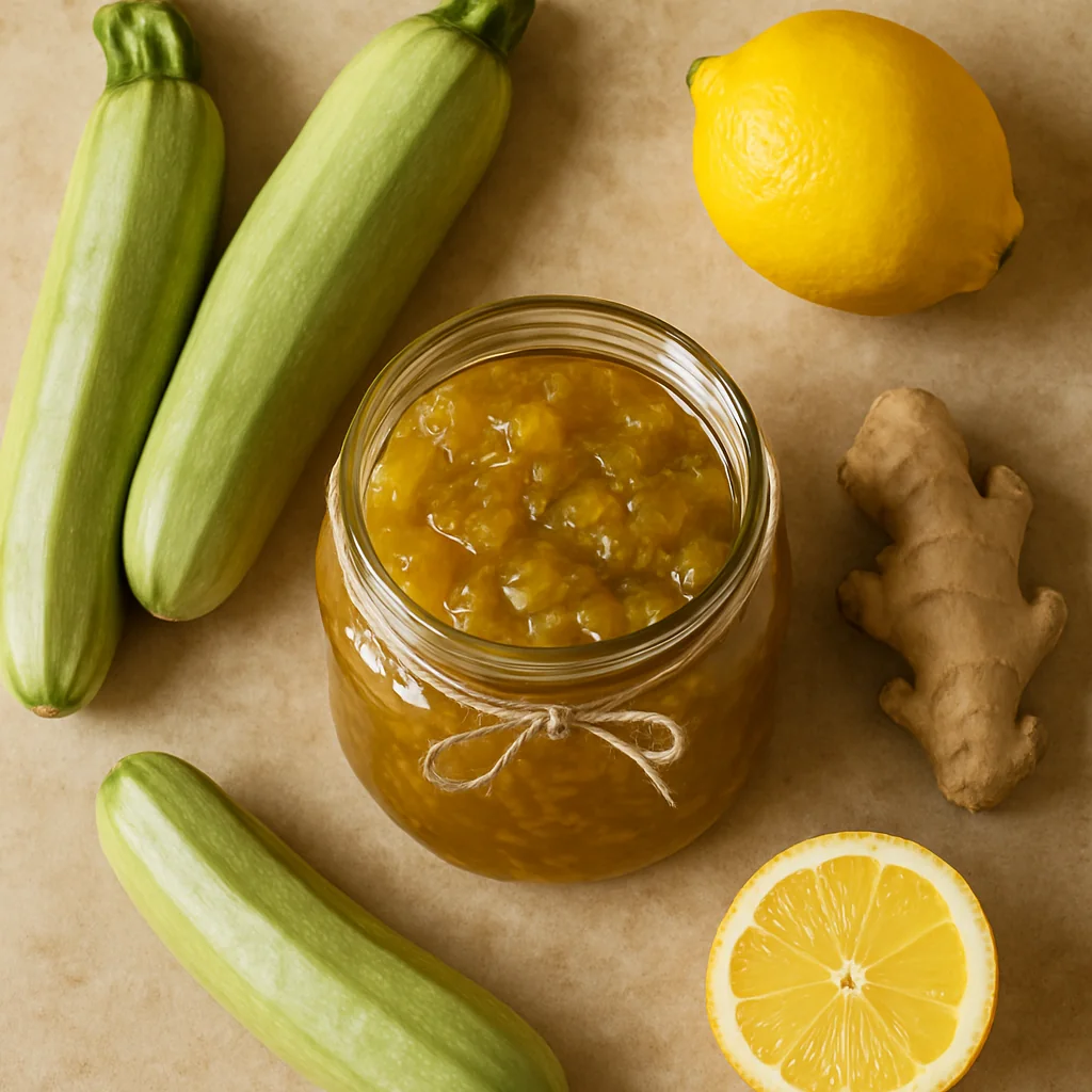 Zucchini jam with lemon and ginger is a unique summer preserve with a bright, refreshing flavor.