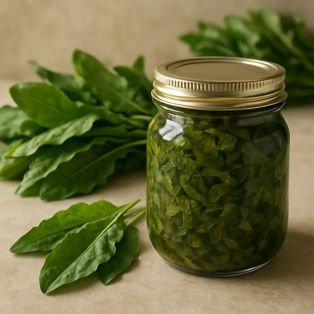 Preserved sorrel for winter is a simple homemade preparation, perfect for green borscht and seasonal dishes.