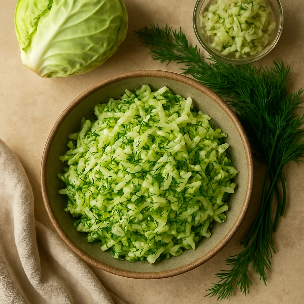 Tender young cabbage in a light marinade — a quick spring side dish for potatoes, meat, and grains.