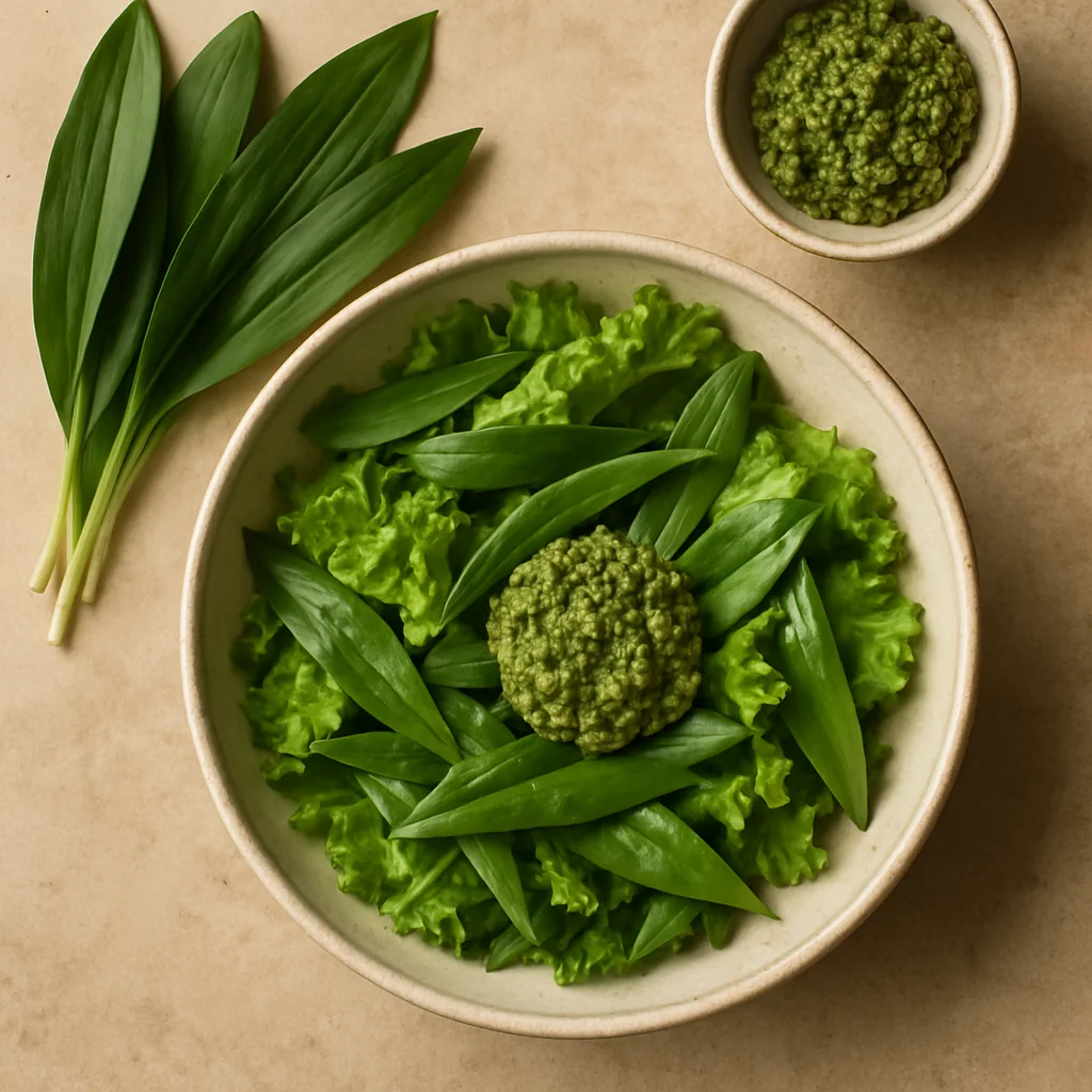 A vibrant spring paste made with ramsons and nuts, perfect for bread, potatoes, eggs, and meat.