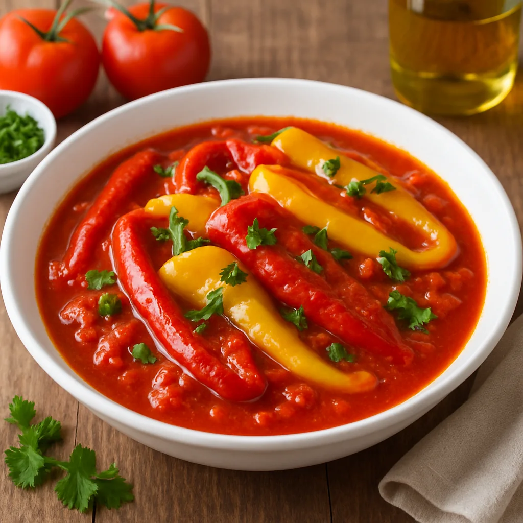 A practical homemade recipe combining roasted peppers with rich tomato sauce, ideal for storage and everyday use.