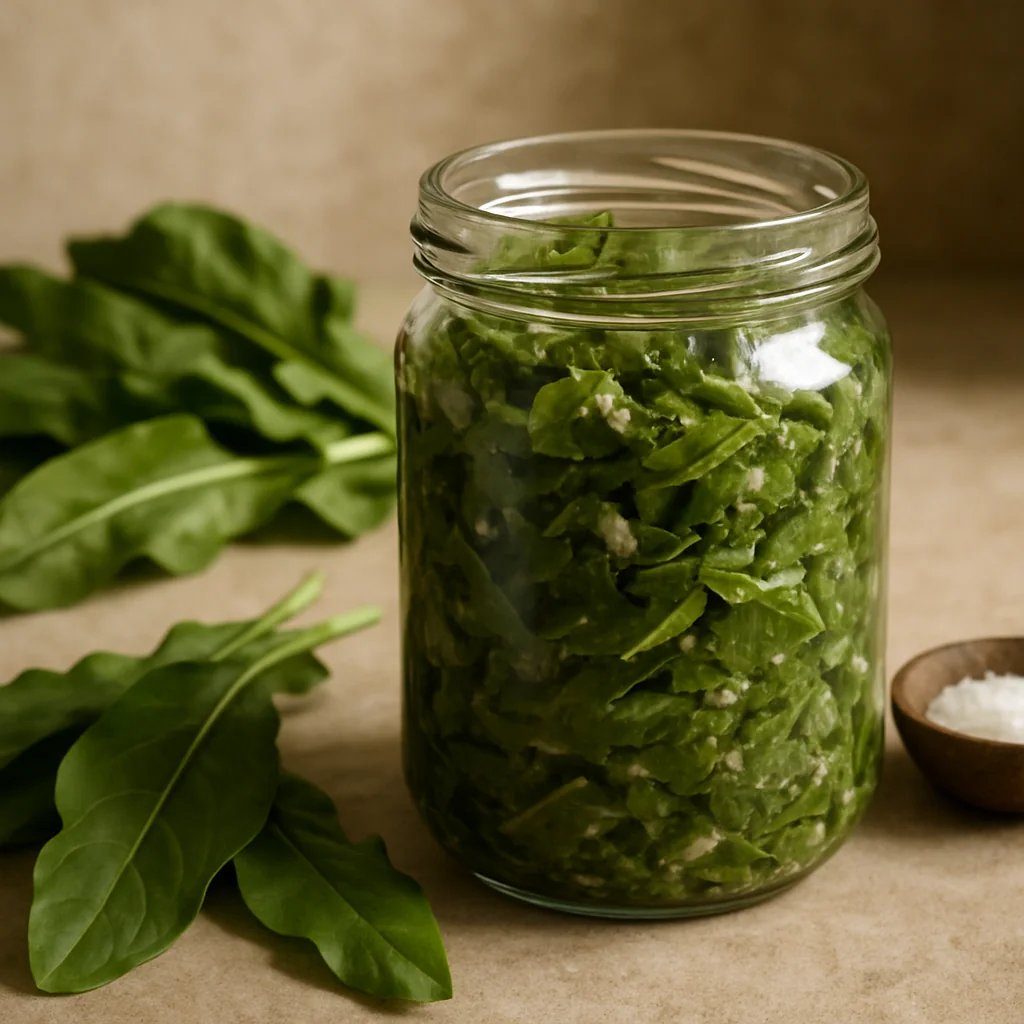 Preserved sorrel for winter is a simple homemade preparation, perfect for green borscht and seasonal dishes.