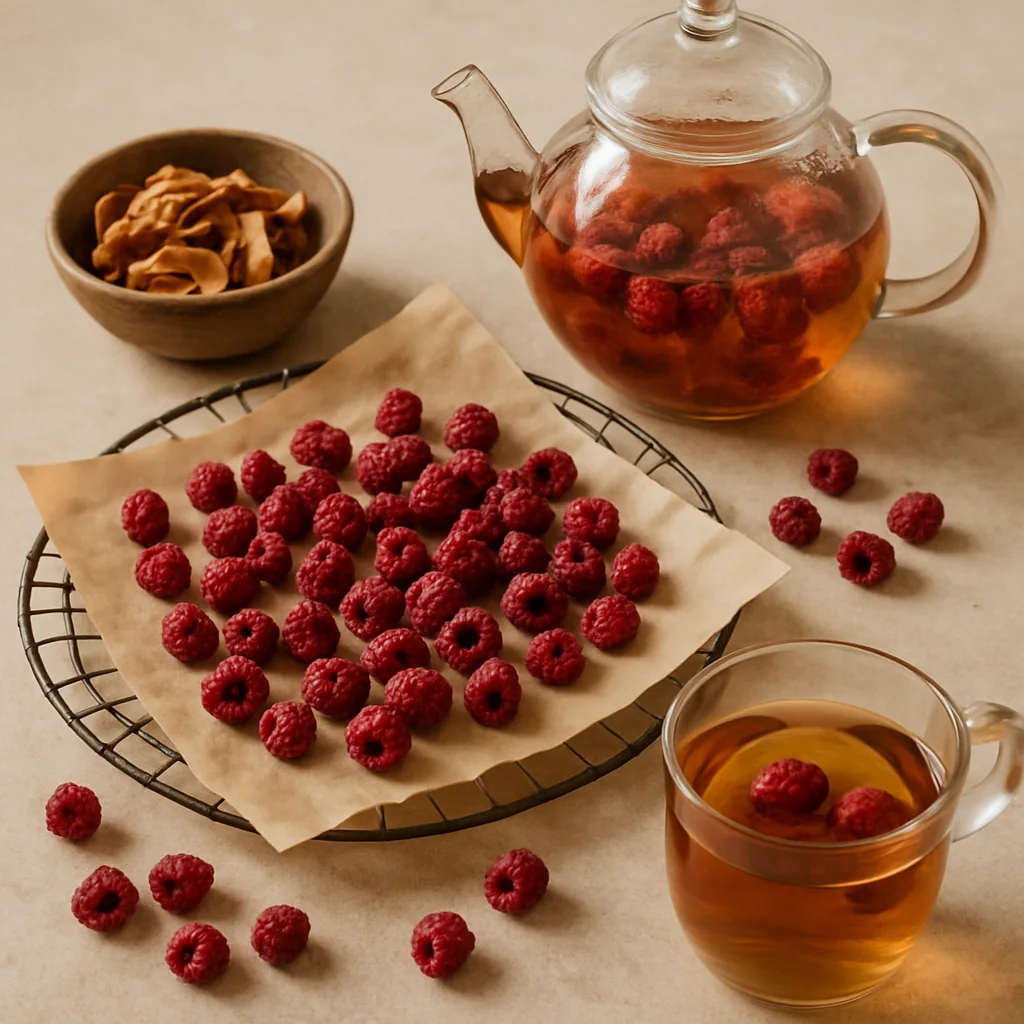Сушена малина зберігає аромат літа й підходить для чаю, каш, десертів і домашніх сумішей.